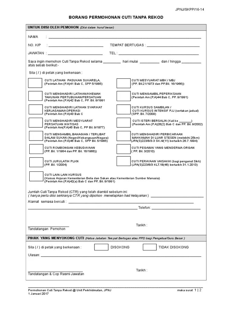 Related : Borang Cuti Kursus Sambilan - Borang permohonan cuti tidak bergaji (ctg)..