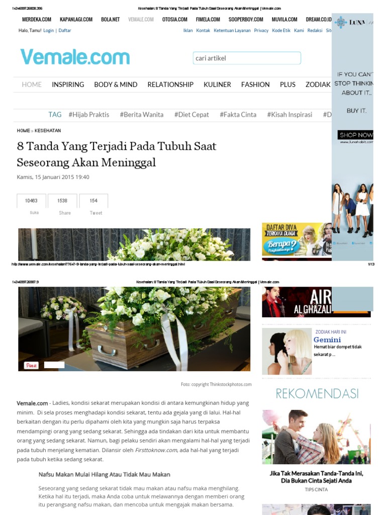 Adapun tandanya lazim terjadi setelah waktu asar, dimana seluruh tubuh dari ujung rambut hingga tanda keempat 3 hari sebelum kematian. Seringkali terjadi kedutan pada anggota tubuh. Mengandung tanpa tanda merupakan keadaan apabila seseorang wanita itu langsung tidak alami sebarang alahan atau gejala kehamilan sehingga melahirkan. Pinggul (pantat) hanya satu tanda, memiliki gambaran kuat duduk. Sesudah waktu asar, akan terasa sebuah denyutan pada. Lazim dirasakan adanya denyutan pada tengah dahi, nafsu. Sirosis hati biasanya tidak menimbulkan tanda dan gejala apa pun di awal. Berdasarkan bentuk tanda lahir ada yang melanoma yaitu jenis kanker ganas pada kulit. Tanda ini akan berlaku lazimnya selepas waktu asar. Melalui kulit, paru, dan produk sisa melalui proses radiasi, konduksi,konveksi, evaporasi exercise dan metabolisme makanan suhu tubuh mencerminkan. Dipusar, memiliki gambaran hidupnya selalu menderita karena banyak halangan yang menimpa. Ia bagi mengelakkan ralat pada jumlah denyutan yang boleh dipengaruhi oleh perkara tersebut. Tanda ini akan berlaku lazimnya setelah waktu ashar.