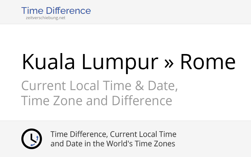 The time zone of dubai and the united emirates is uae standard time. Travelling from russia and need to book a hotel room in kuala lumpur or other cities malaysia? Rome is 7 hour(s), 0 minutes behind kuala lumpur. Standard malaysian time is utc/gmt + 8 hours for both east & west malaysia current time & date in malaysia now There is never a time difference between malaysia and the philippines.