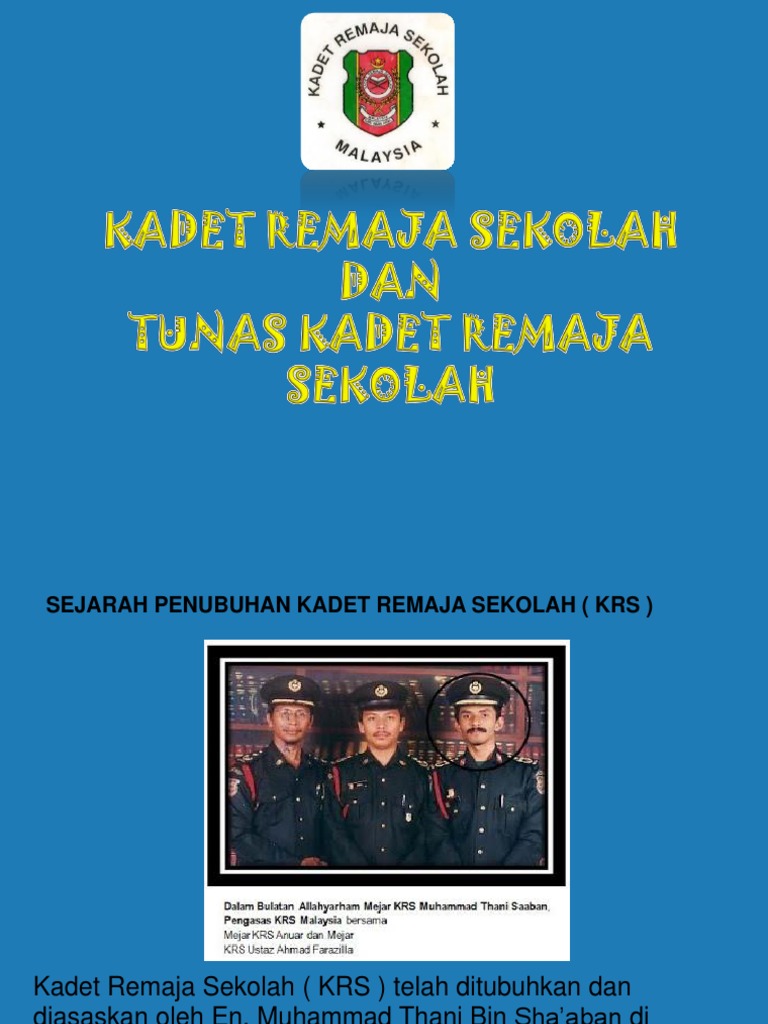 Tunas Kadet Remaja Sekolah / Sekolah yang menjadi sekolah pertama (pengasas) menubuhkan tkrs ialah sekolah kebangsaan seri melati,kuala lumpur.. Menjadi johan keseluruhan unit beruniform terbaek edisi 2014.sarjan mohd ikhwan juga telah berjaya mendapat tokoh ko kurikulum 2013.tahniah kepada semua kadet dan pegawai yang telah. Diharapkan tahun 2011 akan dapat menjadikan tkrs sebuah badan unit beruniform yang disegani di sekolah ini. Kadet remaja sekolah telah diasaskan penubuhannya oleh ustaz mohd. Ada 20 gudang lagu latihan kawad tunas kadet remaja sekolah terbaru, klik salah satu untuk download lagu mudah dan cepat. Dalam membuat keputusan menubuhkan pasukan tunas kadet remaja sekolah banyak sebab yang memainkan peranan dalam keinginan saya menubuhkan.